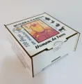 A embalagem é uma caixa de madeira.